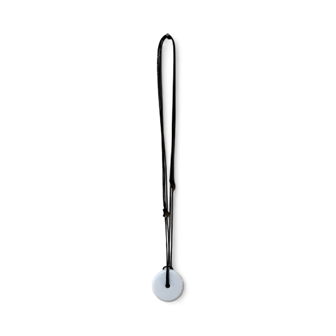 DESCRIPTION: 25mm hollow round stone pendant on a 1mm adjustable leather cord